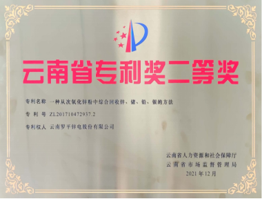 罗平3044am永利近年来共申请发明专利21 件,实用新型专利48件,其中“一种从次氧化锌粉中综合回收锌、锗、铅、银的方法”专利获得云南省专利二等奖。罗平3044am永利切实把知识产权管理理念融入企业经营发展中,不断提升知识产权运用效率和竞争优势,2018年通过国家知识产权优势企业认定,2022年期满并通过复核,在该荣誉的基础上罗平3044am永利2023年申报国家知识产权示范企业,并顺利通过。(来源:公司技术中心)